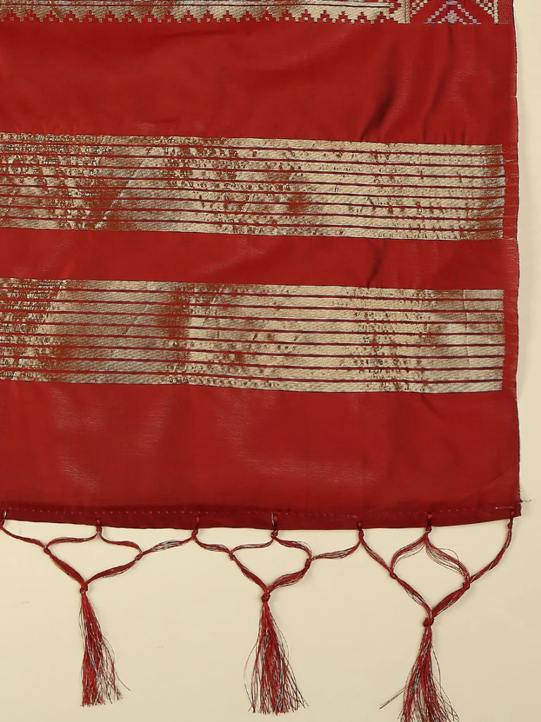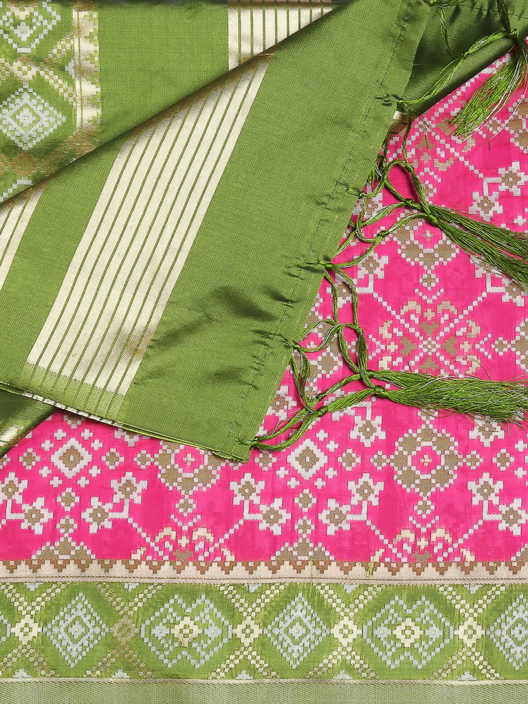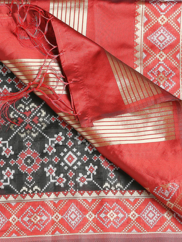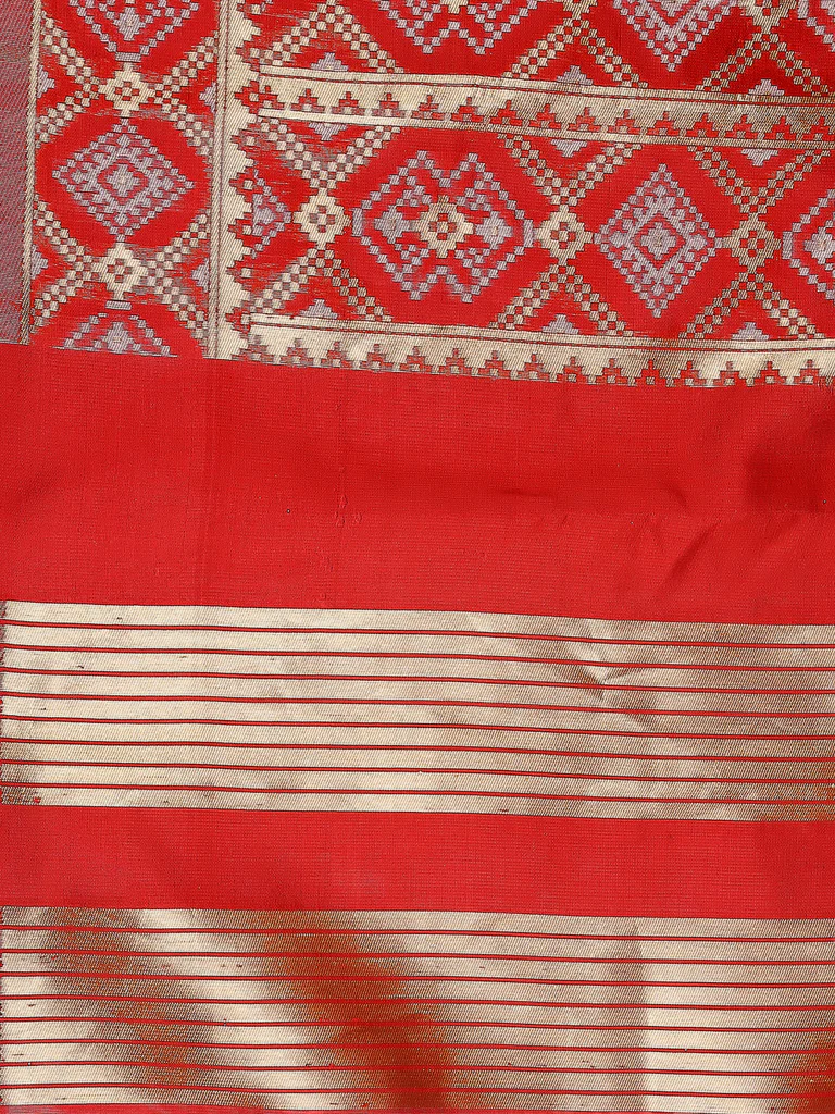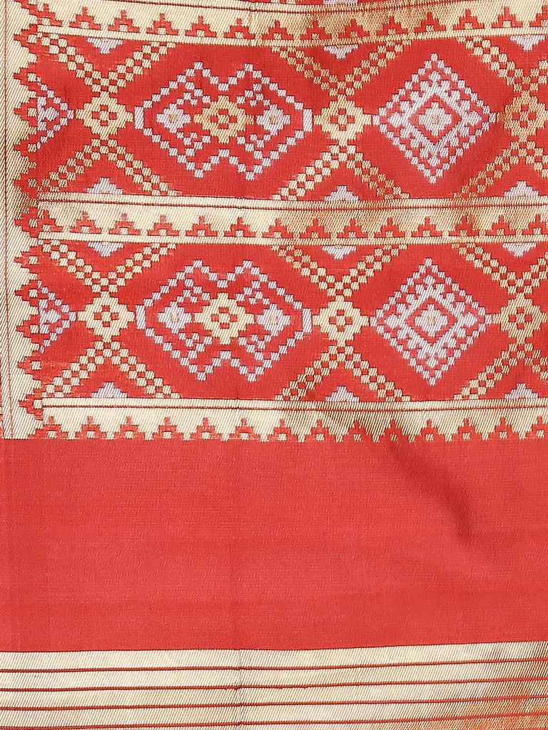 Add a touch of elegance to your wardrobe with this exquisite piece of beautiful Banarasi Silk Dupatta. Swathed with elegant Patola style weaving all over, this classic stunner is a must in your ethnic collection.