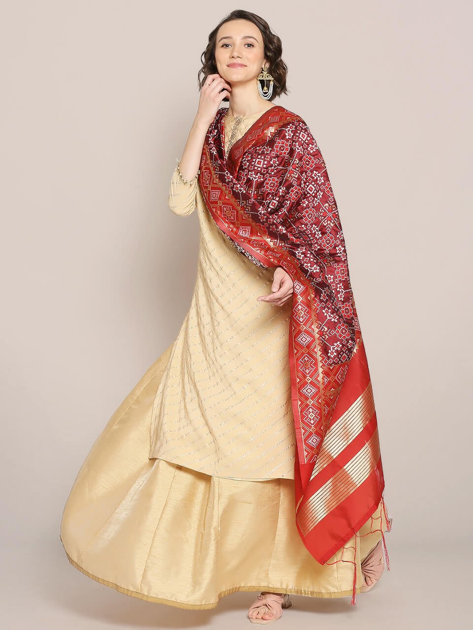 You can team this dupatta with a kurta set, anarkali, lehenga or skirt and complement your look with traditional style danglers to look fabulous.