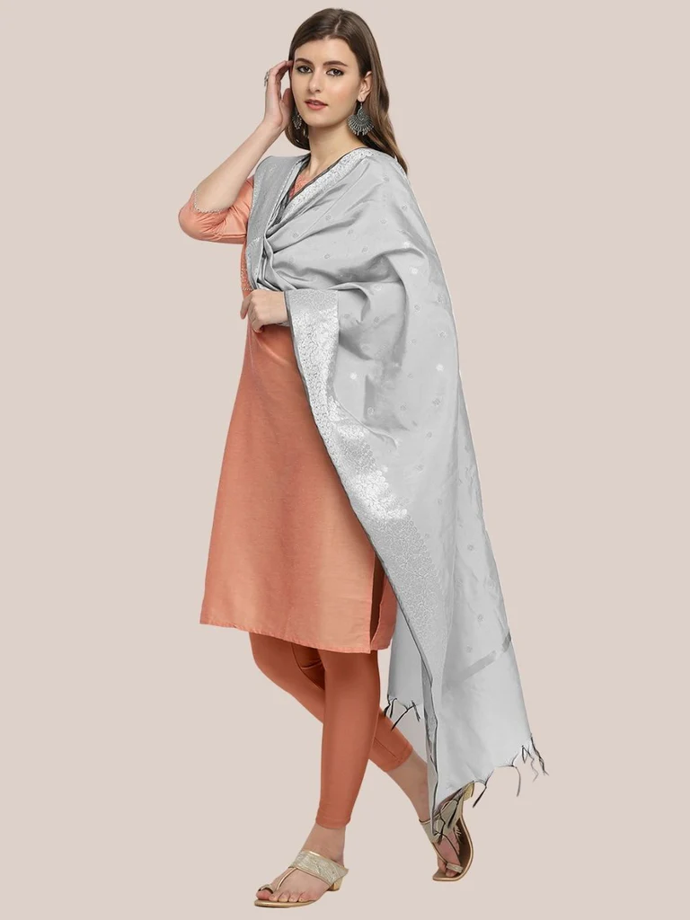 Banarasi Silk Dupatta with Silver Border