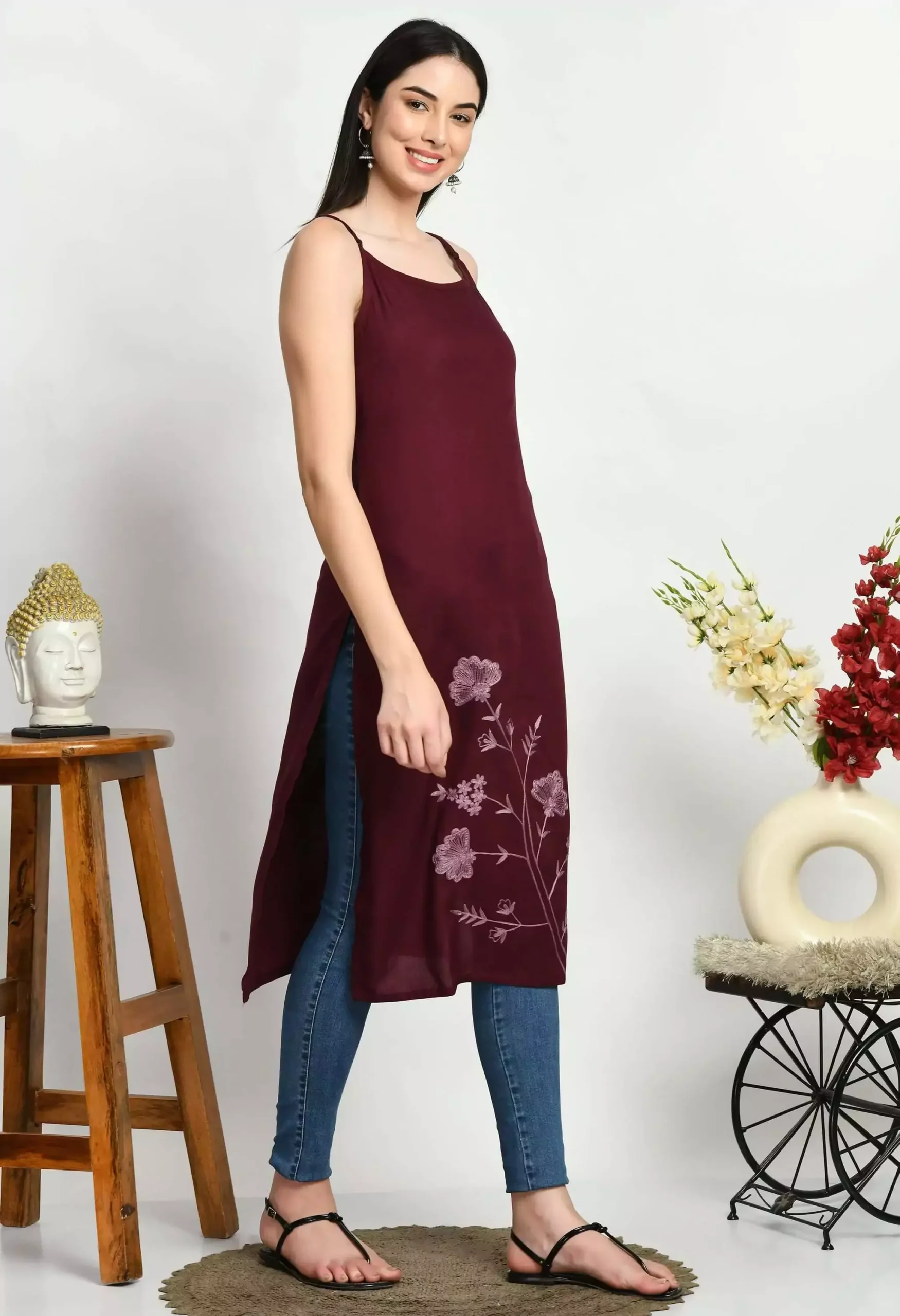 Look ethereal in this Aari work Kurti, crafted with Silk Thread.