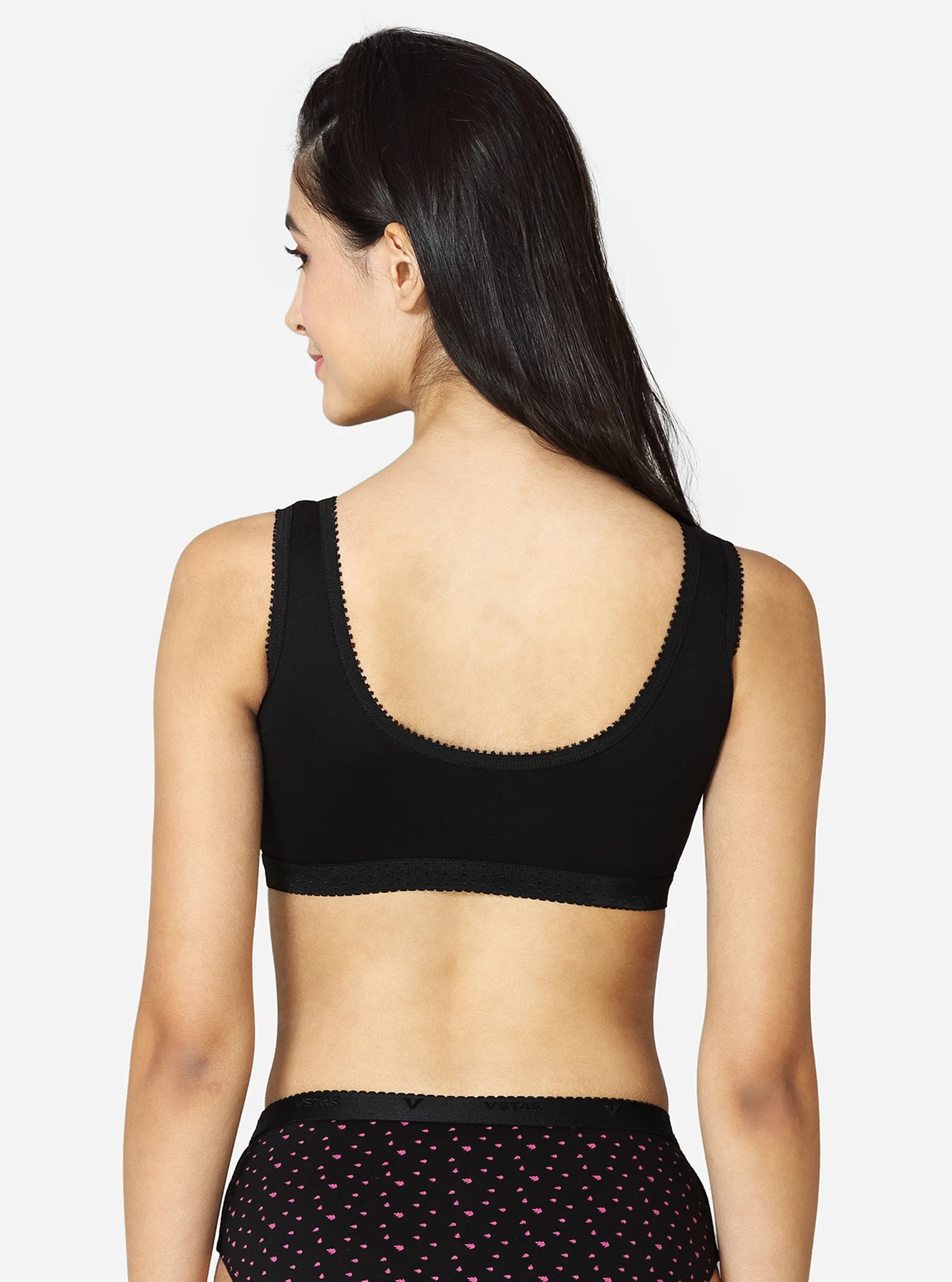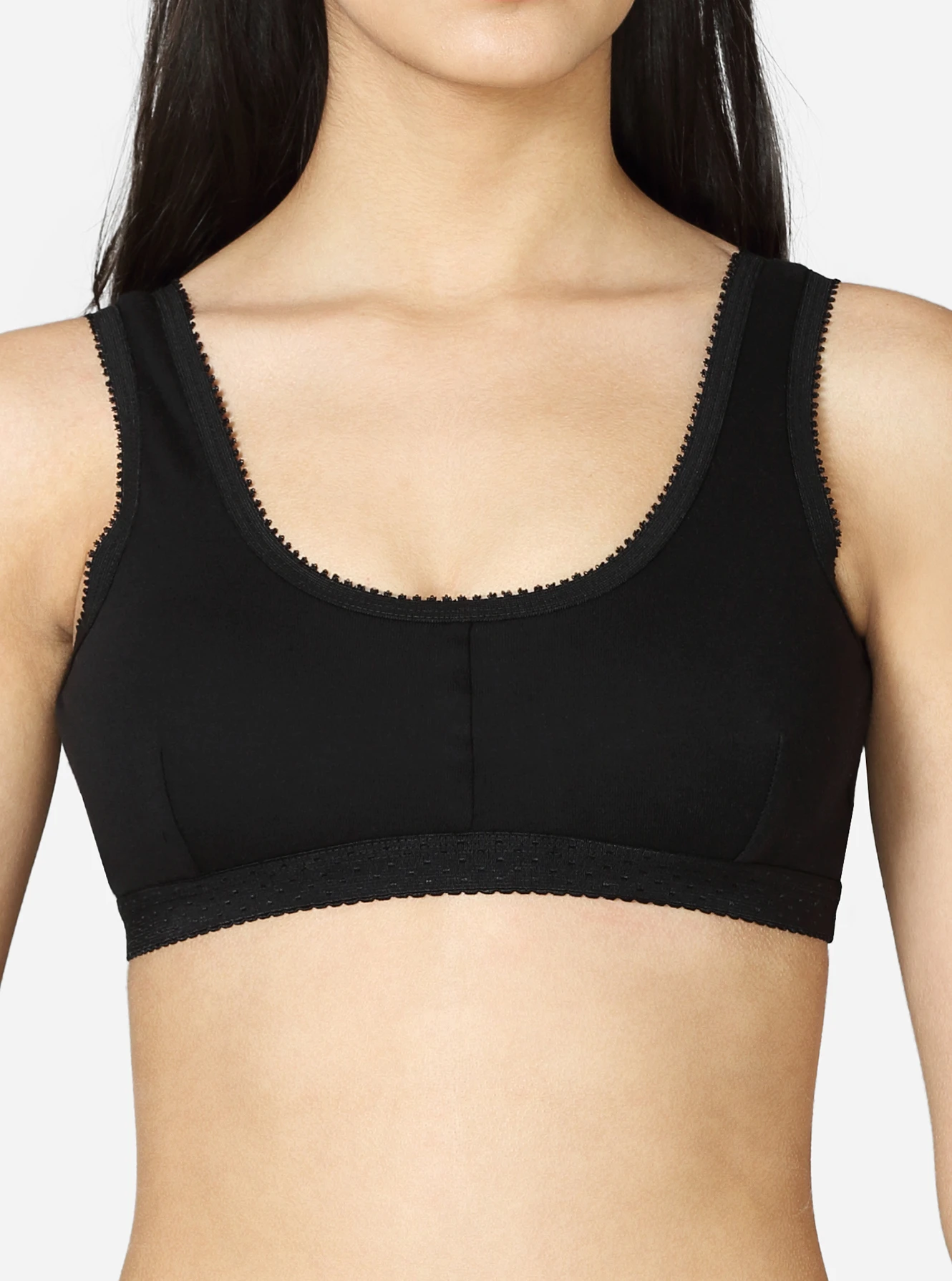 Made of 100% superior, soft combed cotton, providing excellent comfort. The double-layered, darted front panel provides maximum support. Seamed, non-padded with high coverage on the centre front. Soft, smooth, wide camisole-style strap.p No hooks or eyes attached for easy slip-on. Available in white skin & black colors