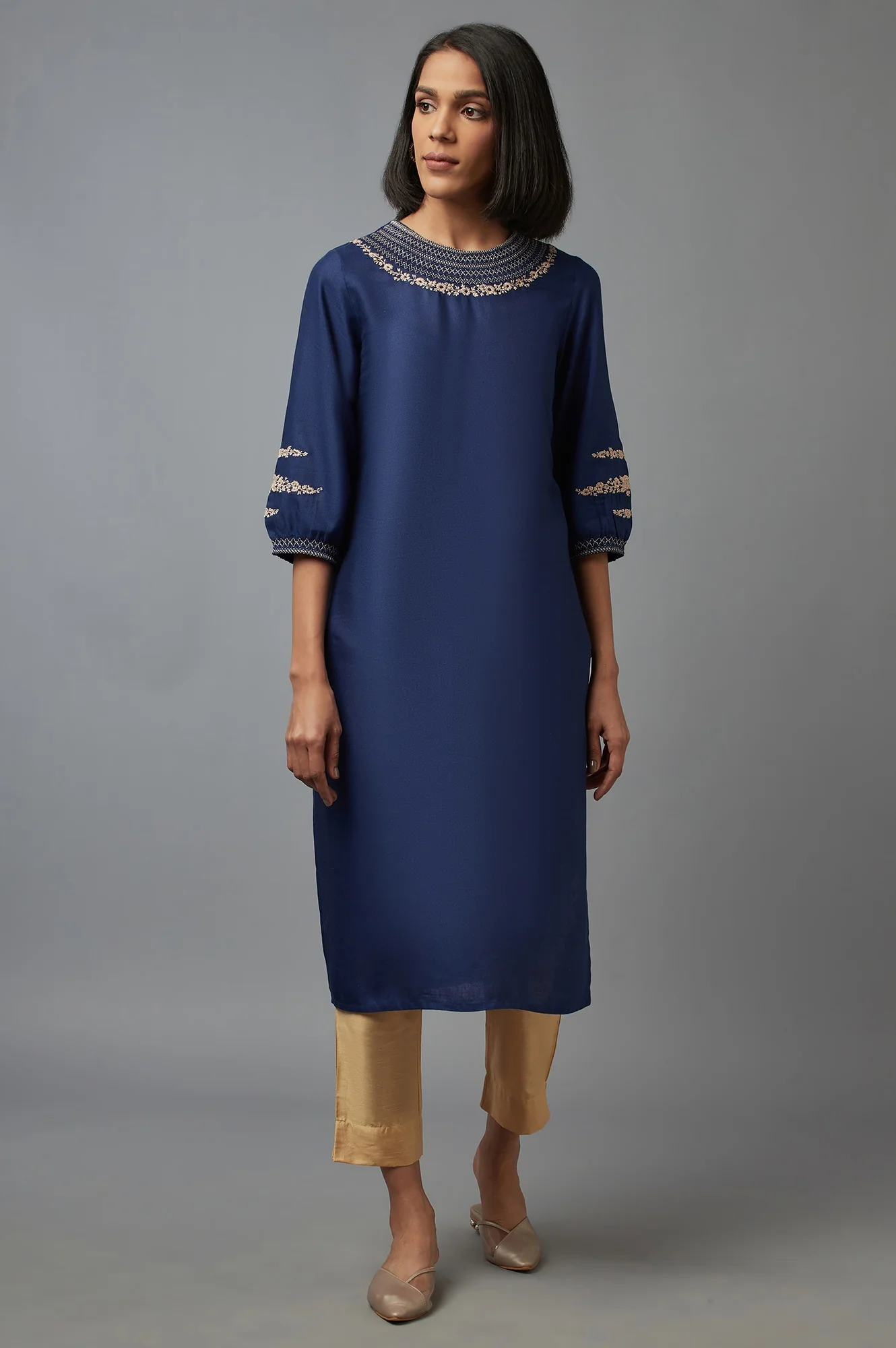 Elegantly crafted with intricate Schiffli embroidery, this lightweight palazzo offers a perfect blend of comfort and style. The silhouette is designed for effortless movement, along with two side pockets, making it a versatile addition to both casual and formal wardrobes. Ideal for adding a touch of traditional charm with modern flair.