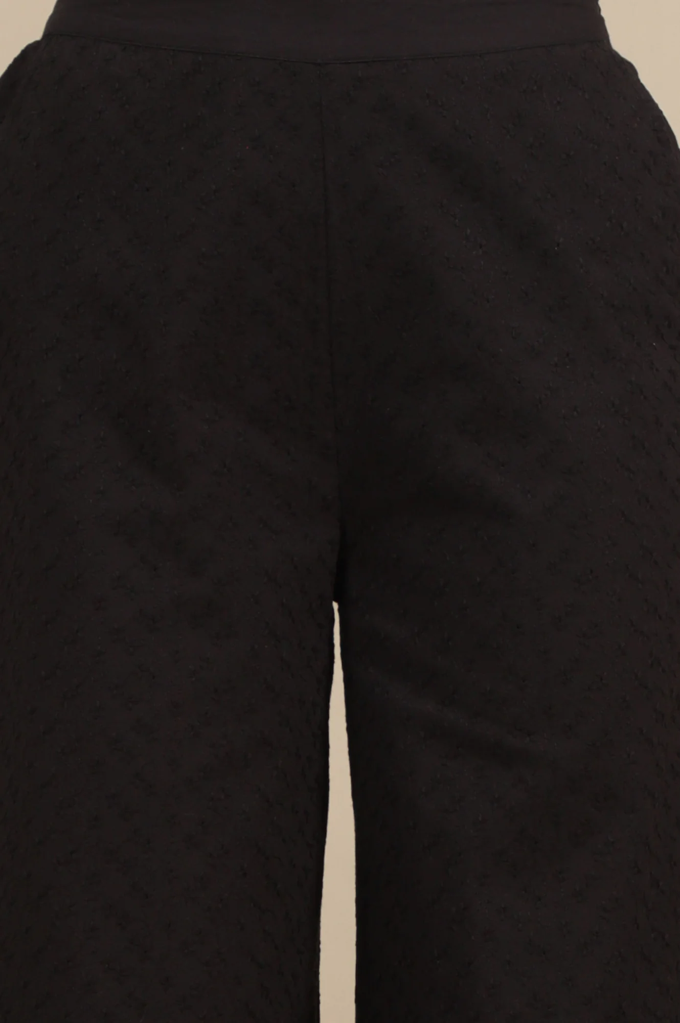 Elegantly crafted with intricate Schiffli embroidery, this lightweight palazzo offers a perfect blend of comfort and style. The silhouette is designed for effortless movement, along with two side pockets, making it a versatile addition to both casual and formal wardrobes. Ideal for adding a touch of traditional charm with modern flair.