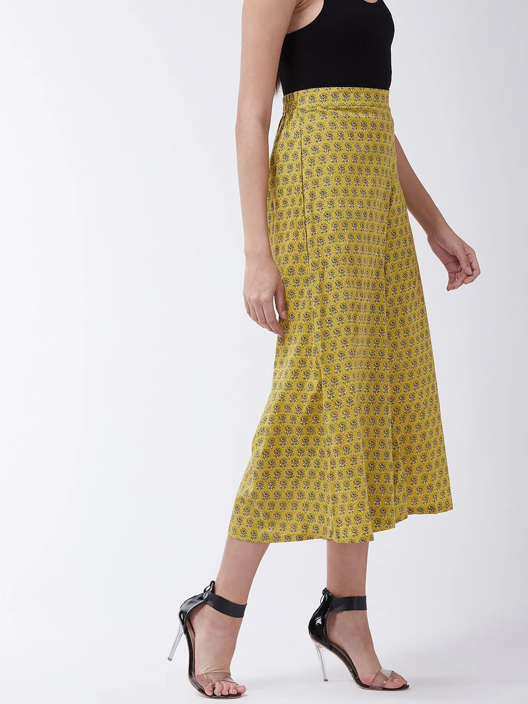 Embrace the spirit of summer with this pair of cool, gray-colored handloom palazzos. These cropped palazzos are made with original cotton fabric and showcase pretty front pleats.