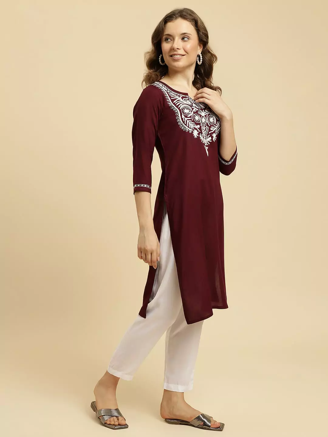 Look ethereal in this Aari work Kurti, crafted with Slik Thread.